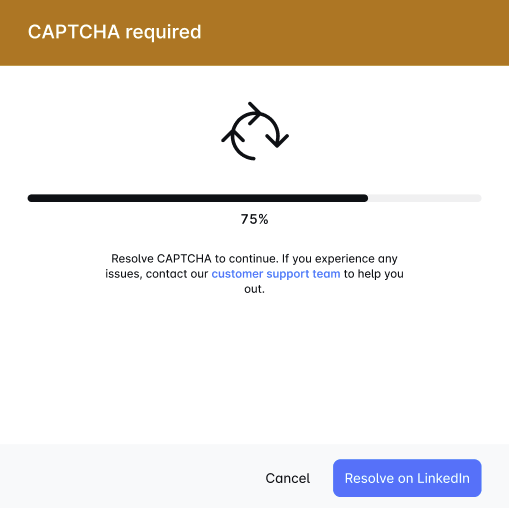 Encountering a CAPTCHA while setting up LinkedIn? 🧩 Simply click "Try by yourself," solve the puzzle, and enter the PIN to complete setup. We’re dedicated to making your ZRG LinkedIn Marketing experience seamless. Enjoy! 🚀
