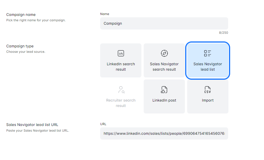 Leads list type of campaign