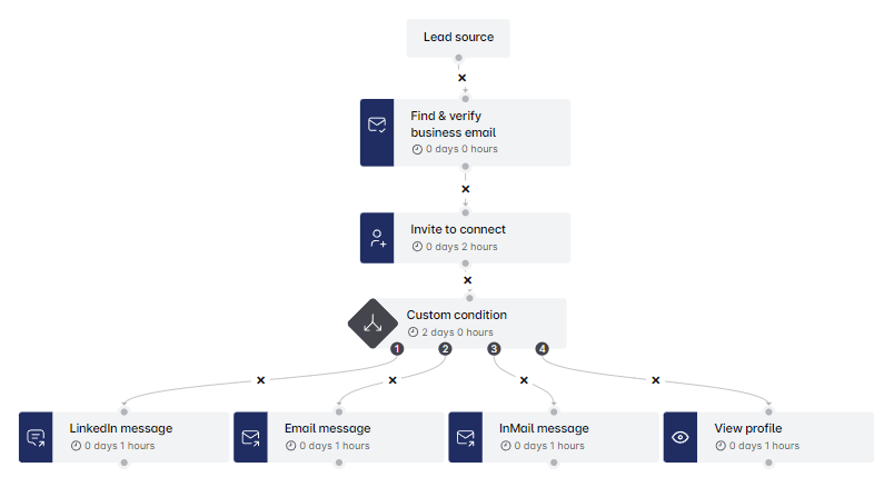 Leverage Custom Conditions in the ZRG LinkedIn Marketing to optimize your campaigns and workflow. With up to five tailored outputs, you can handle leads based on connection status, email verification, and InMail options, creating seamless, efficient sequences. Start using Custom Conditions to elevate your campaigns and engage smarter! 🚀