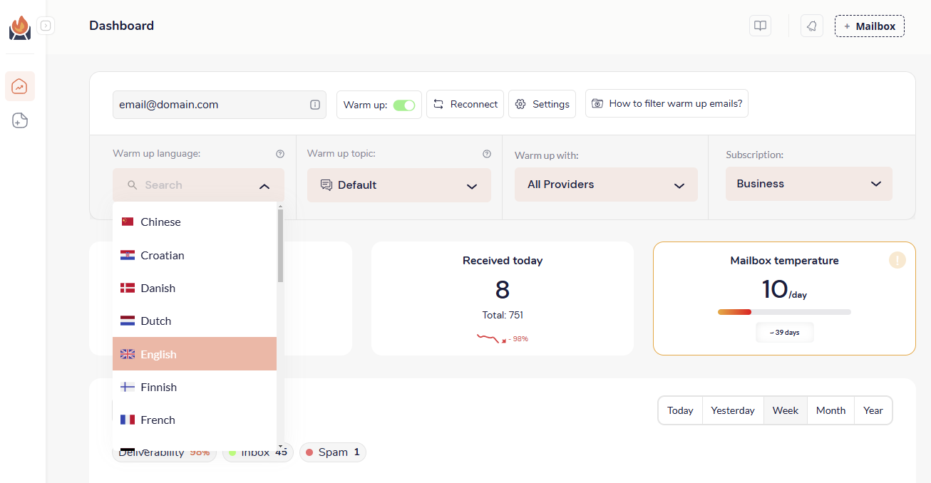 3. Choose specific topics for emails - This is where Warm up topic comes in. You can choose a topic for your account, and it will generate warm-up emails for specific industries, helping you personalize your warm-up further.